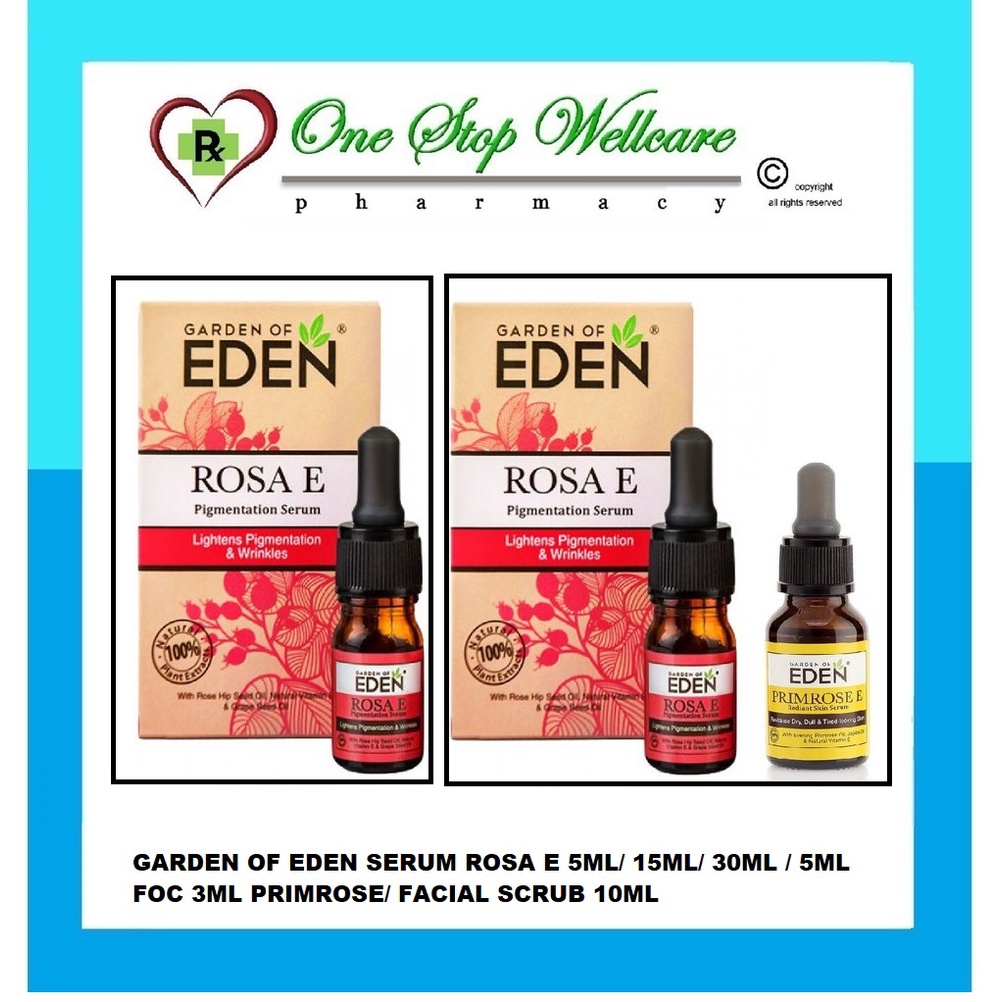 Garden Of Eden Serum Rosa E 3ml 15ml 30ml 5ml Foc Primrose 3ml Facial Scrub 10ml Foc Satin Day Cream 15g Foc R S Serum Shopee Malaysia